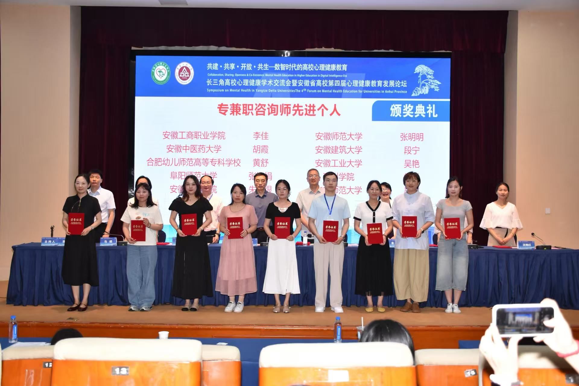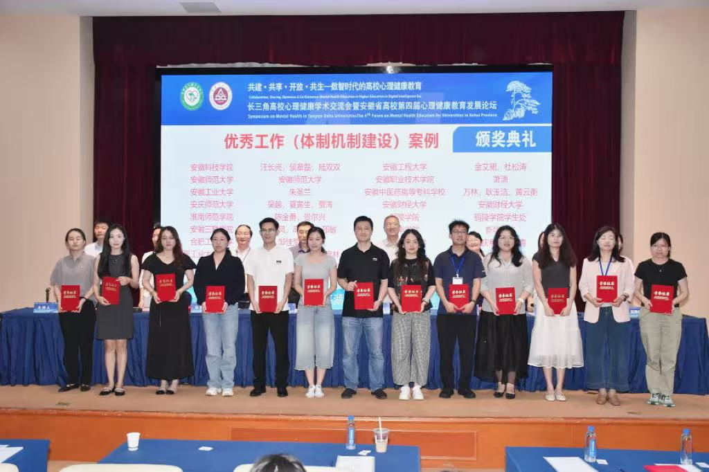 会上,我校申报的心理健康教育体制机制创新工作案例获评优秀案例。夏寅生荣获“学工系统先进个人”称号,吴越荣获“专兼职咨询师先进个人”称号,贾涛、夏寅生当选安徽省心理卫生协会大学生心理健康与咨询专业委员会第二届委员会委员,贾涛任常务委员。